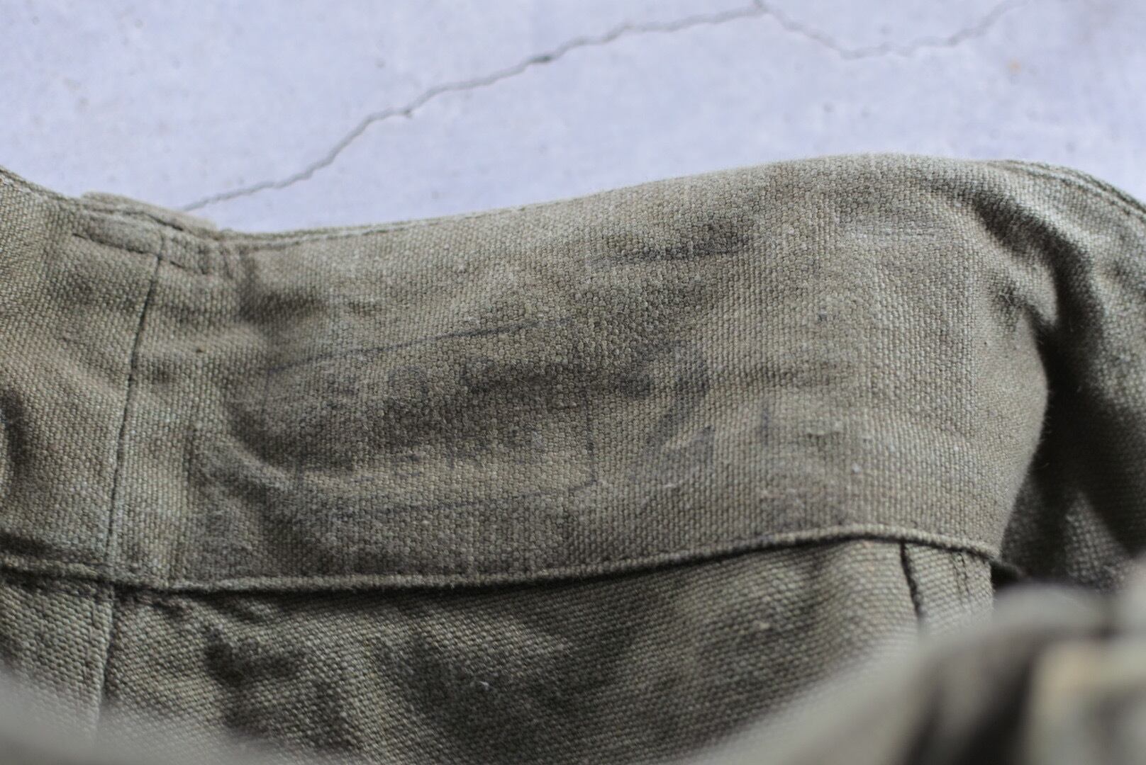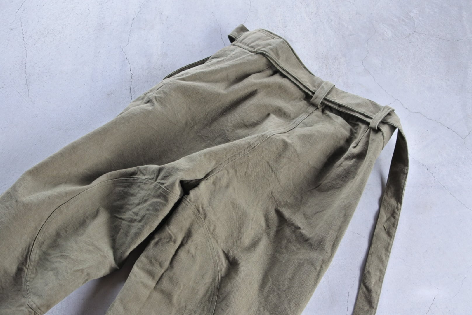 オーバーパンツとしてサイドに開いているスリットは当店でミシンにより塞いでおります。